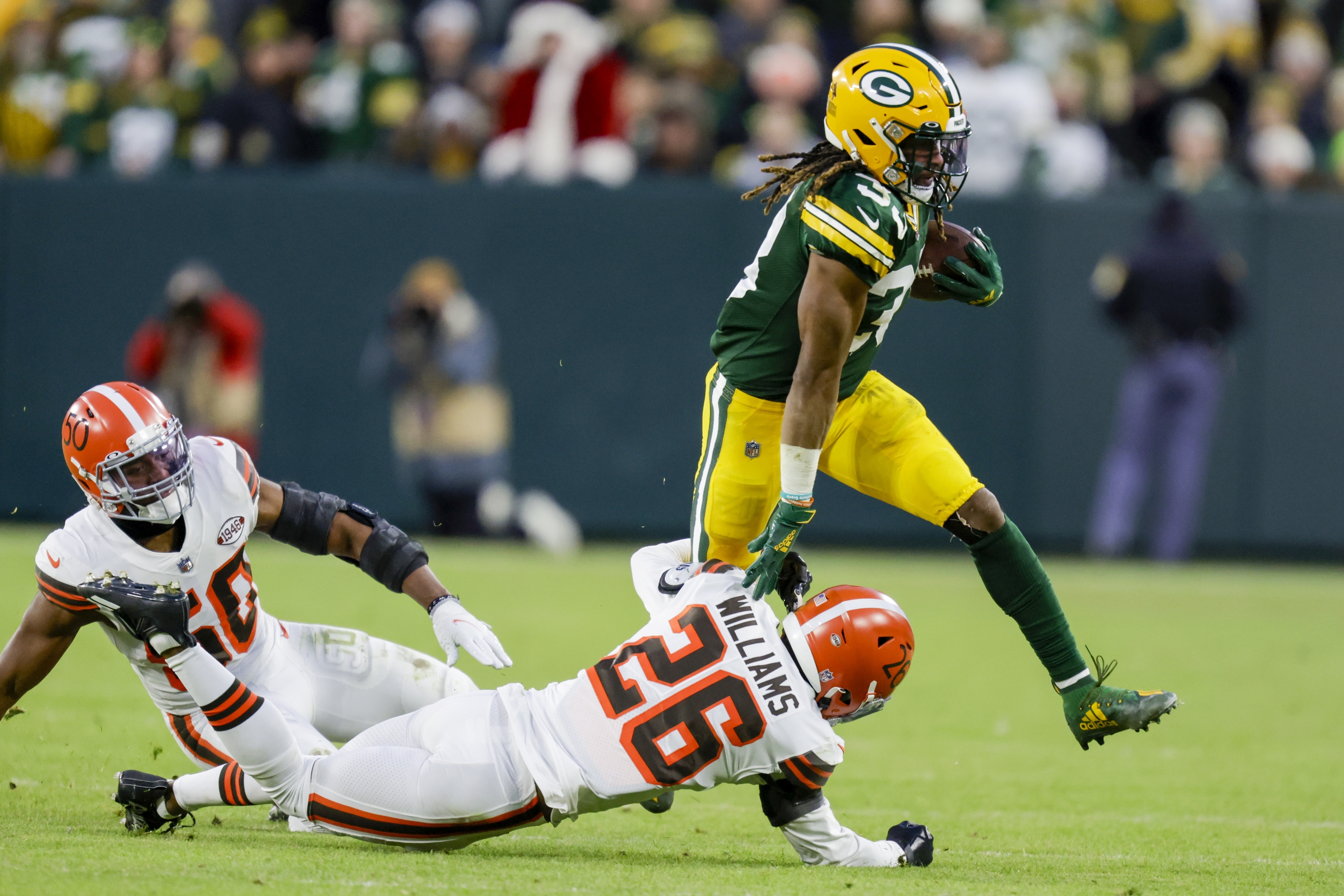 Aaron Rodgers gets the Browns to jump on a hard count and that. A fan dressed as Santa Claus poses for a picture before the game between the Green Bay Packers and the. 32f Mostly Cloudy Mostly Cloudy.